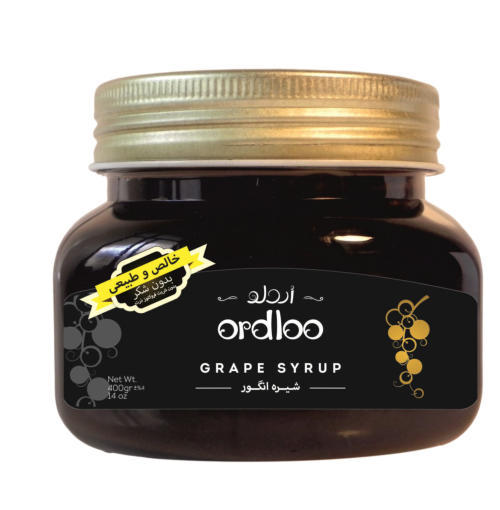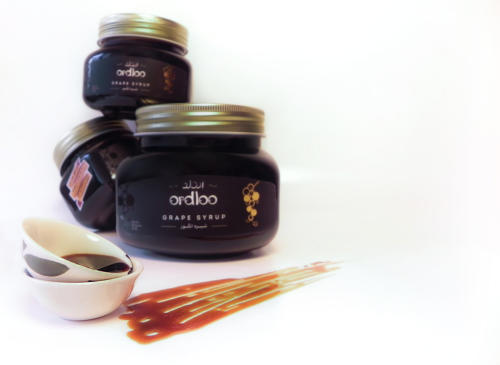 Grape syrup is a condiment made with concentrated grape juice. It is thick and sweet because of its high ratio of sugar to water. Grape syrup is made by boiling grapes, removing their skins, squeezing them through a sieve to extract the juice, and adding sugar. Like other fruit syrups, a common use of grape syrup is as a topping to sweet cakes, such as pancakes or waffles
